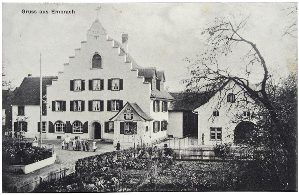 Bäckerei im Staffelhof Pfarrhausstrasse 12. Kinder. Vorgärten. Postkarte. Quelle: Sammlung Hans Baer.