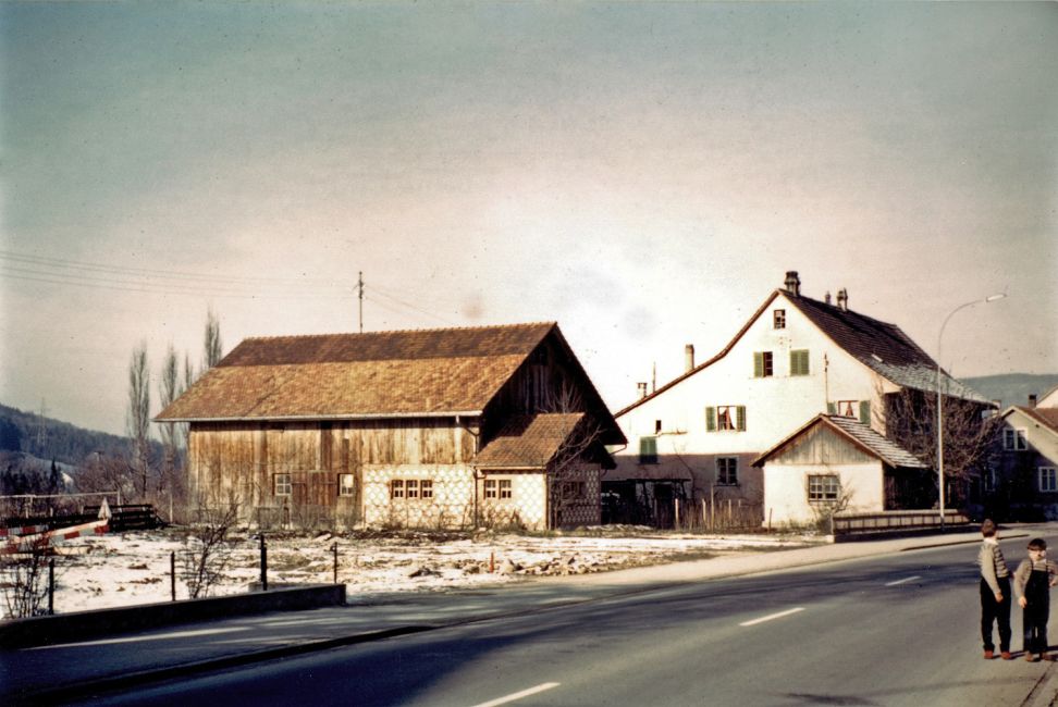 Dorfstrasse 87, Hof der Familie Lienhard. Oskar und Christian Lienhard. Kinder. Quelle: Oskar Lienhard.