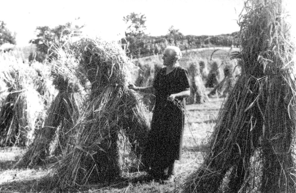 Getreidegarben auf dem Feld. Personen? Quelle: Oskar Lienhard