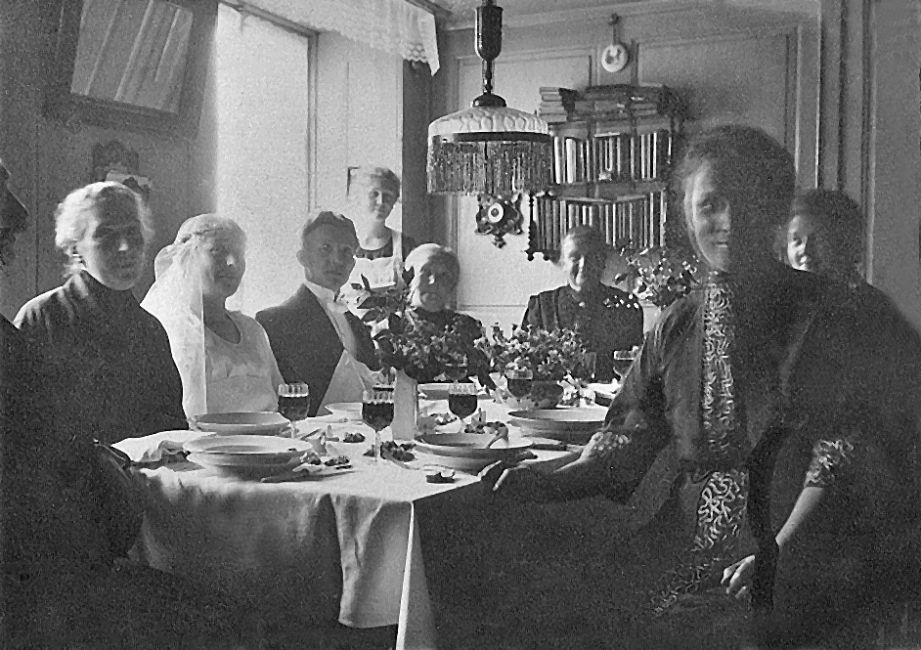 Hochzeit Gertrud Volkart und Otto Zinggeler 1923, Hochzeitsessen an der Dorfstrasse 28.