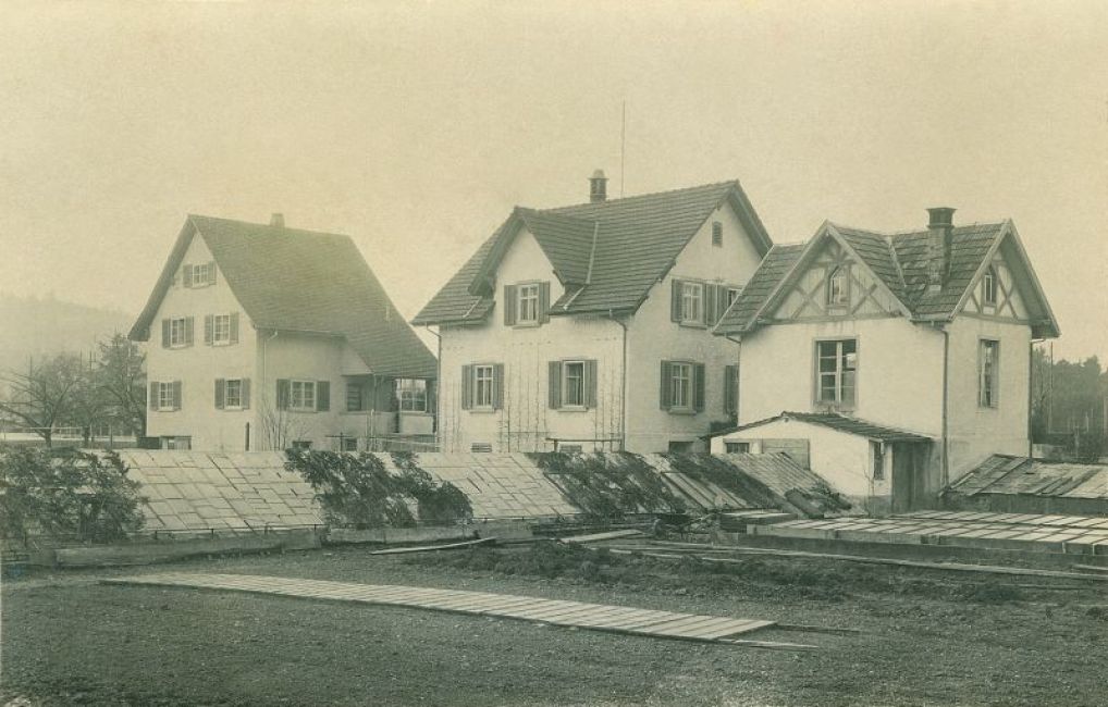 Gärtnerei Bahnstrasse 9 in Embrach ca. 1930. Links Bahnstrasse 11.