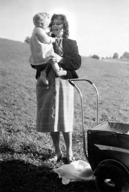Margrith Zangger (verh. Gehring) mit Susi Gauss, Tochter von Nelli Gauss-Zangger. Kinder. Kinderwagen von Wisa-Gloria.