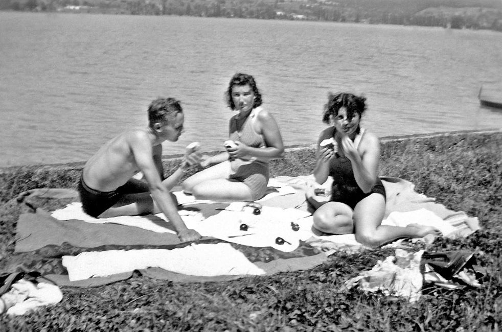 Veloausflug an den Untersee (Bodensee). Freund von Hanne Götz, Hanne Götz, Margrith Zangger (verh. Gehring).