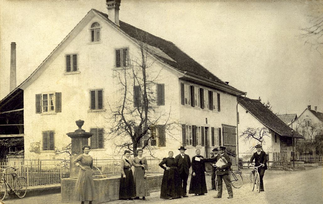 Familie Weidmann vor dem Elternhaus Dorfstrasse / Haldenstrasse 1