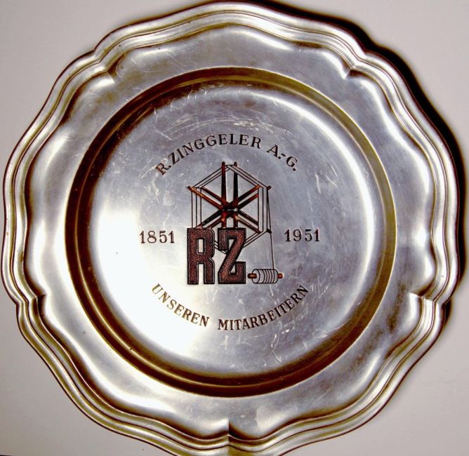 Zinnteller Jubiläum Seidenzwirnerei Rudolf Zinggeler.