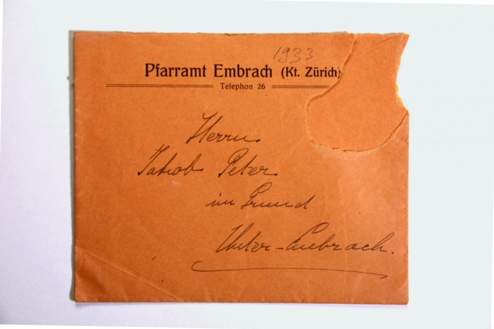 Pfarramt Embrach an Jakob Peter. Quelle: Familienarchiv Peter. Buch Seite 147