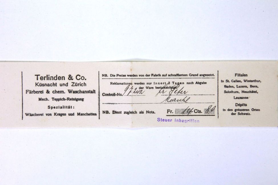 Chemische Reinigung. Terlinden. Buch WS 3. Quelle: Familienarchiv Peter.