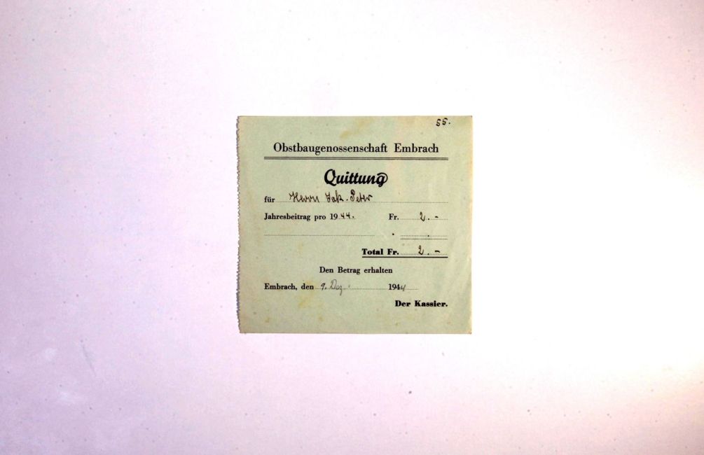 Obstbaugenossenschaft Jahresbeitrag. Quelle: Familienarchiv Peter