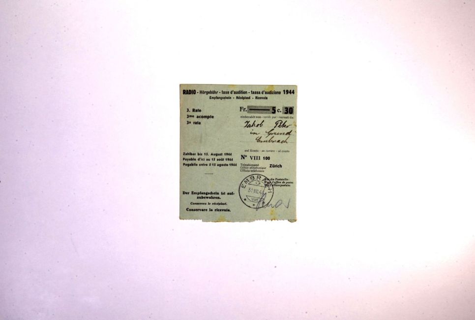 Radiohörgebühr für Jakob Peter. Buch WS 170. Quelle: Familienarchiv Peter.