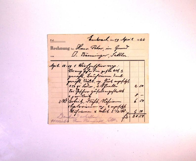 Sattler Jean Bänninger ("Böck Bänninger"), Oberdorfstrasse 11. Alte Deutsche Schrift (Transkription?). Quelle: Familienarchiv Peter.