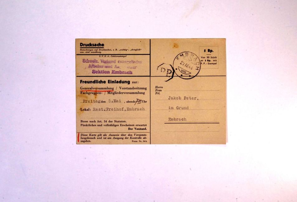 Schweizerischer Verband evangelischer Arbeiter und Angestellter SVEA. Sektion Embrach. Generalversammlung Restaurant Freihof. Buch Seite 146. Quelle: Familienarchiv Peter.