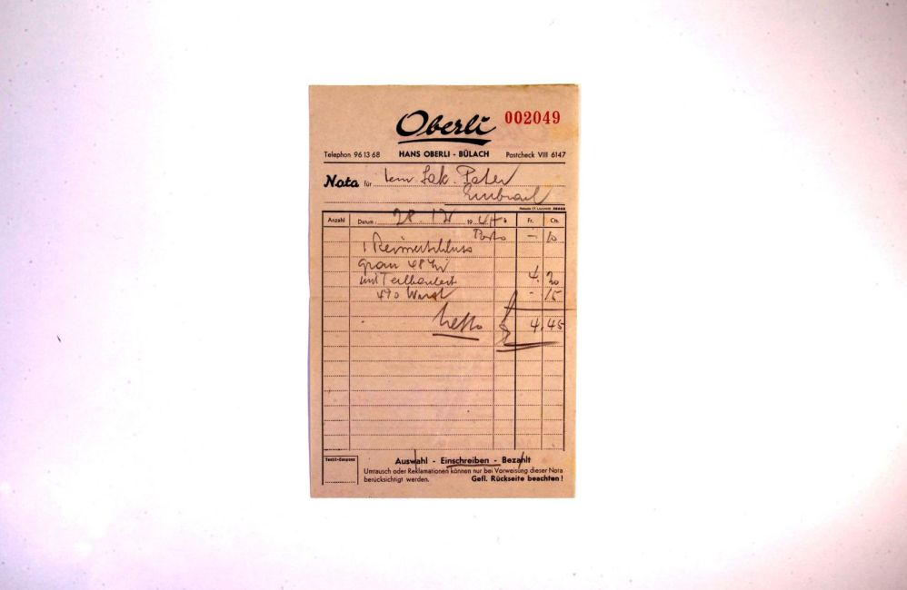 Reissverschluss von Hans Oberli Bülach, per Einschreiben. Buch WS 65. Quelle: Familienarchiv Peter