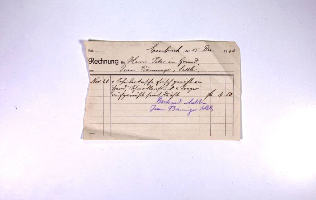Sattlerei Jean Bänninger ("Böck Bänninger"), Oberdorfstrasse 11. Alte Deutsche Schrift (Transkription?). Quelle: Familienarchiv Peter