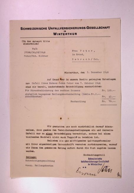 Schweizerische Unfallversicherungsgesellschaft Winterthur. Entschädigung für Unfall.
