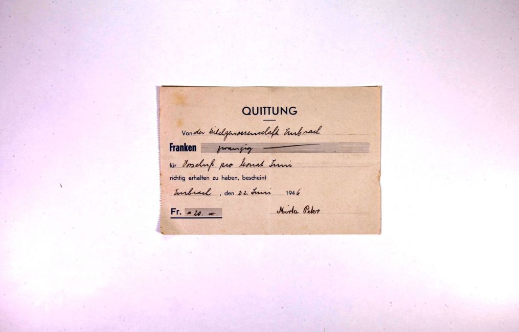 Vorschuss der Milchgenossenschaft abgeholt von der Tochter Myrta Peter. Quelle: Familienrachiv Peter.