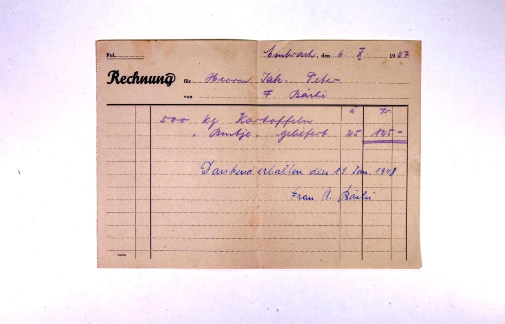 Kartoffeln Bintje zugekauft von F. Bächi. Buch WS 42. Quelle: Familienarchiv Peter.