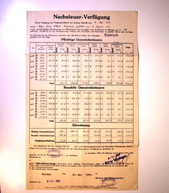 Nachsteuer Georg Volkart, nach seinem Tod erhoben. Buch WS 140. Quelle: Rosmarie ZInggeler