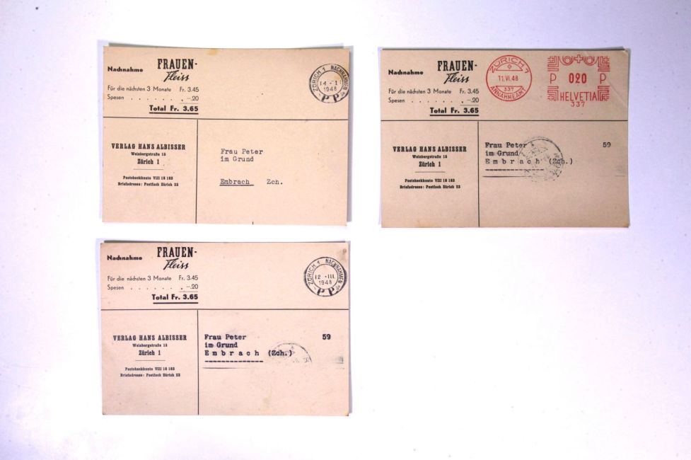 Frauenfleiss, Verlag Hans Albisser, Zürich. Nachnahme für drei Monate. Buch WS 179. Quelle: Familienarchiv Peter.