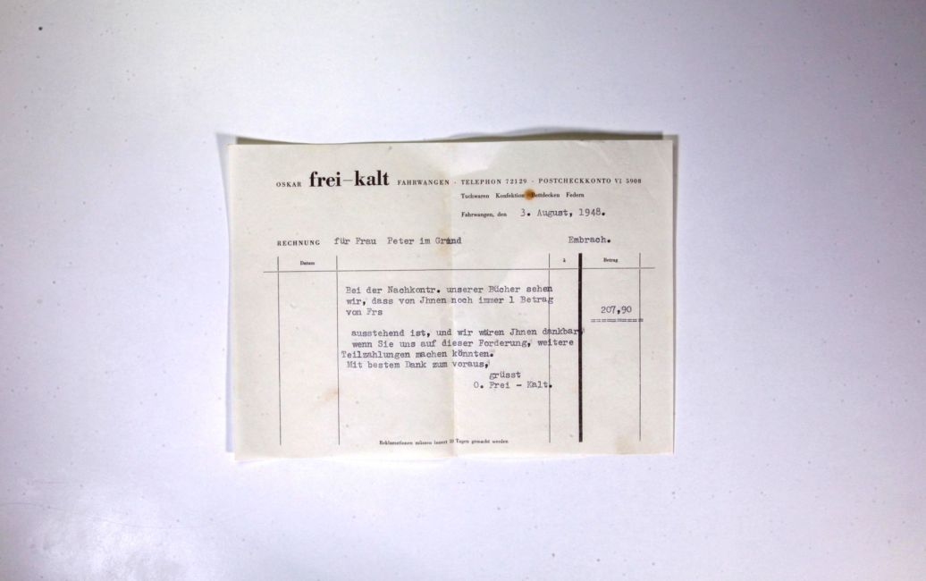 Mahnung von Oskar Frei-Kalt, Fahrwangen. Buch Seite 131. Quelle: Familienarchiv Peter.