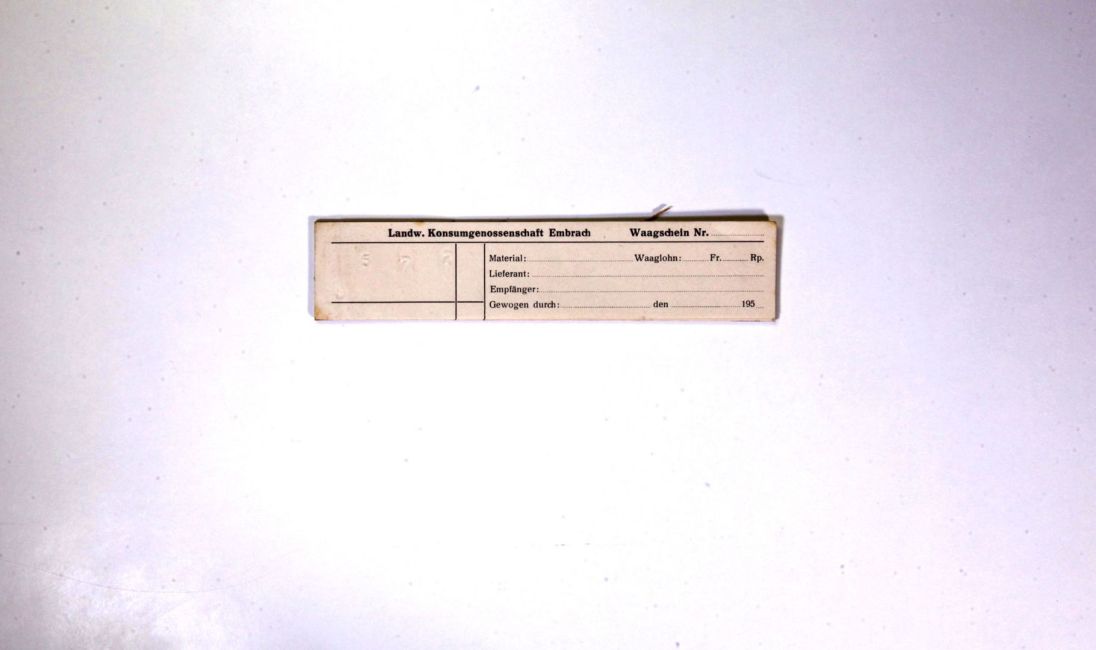 Neuer Waagschein der Landwirtschaftlichen Konsumgenossenschaft, leer. Quelle: Familienarchiv Peter