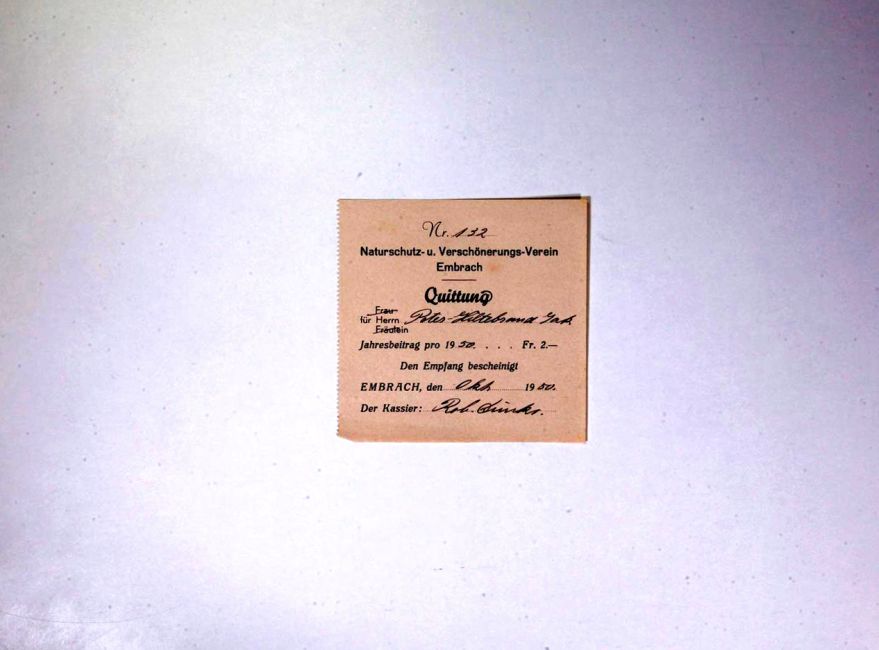Naturscgutz- und Verschönerungsverein. Jahresbeitrag. Kassier Robert Dünki. Quelle: Familienarchiv Peter.