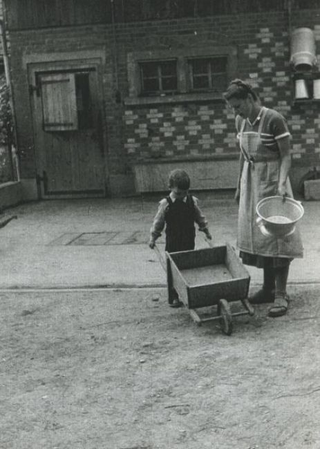 Dorfstrasse 87: Oskar Lienahrd junior hilft mit, ca. 1959.