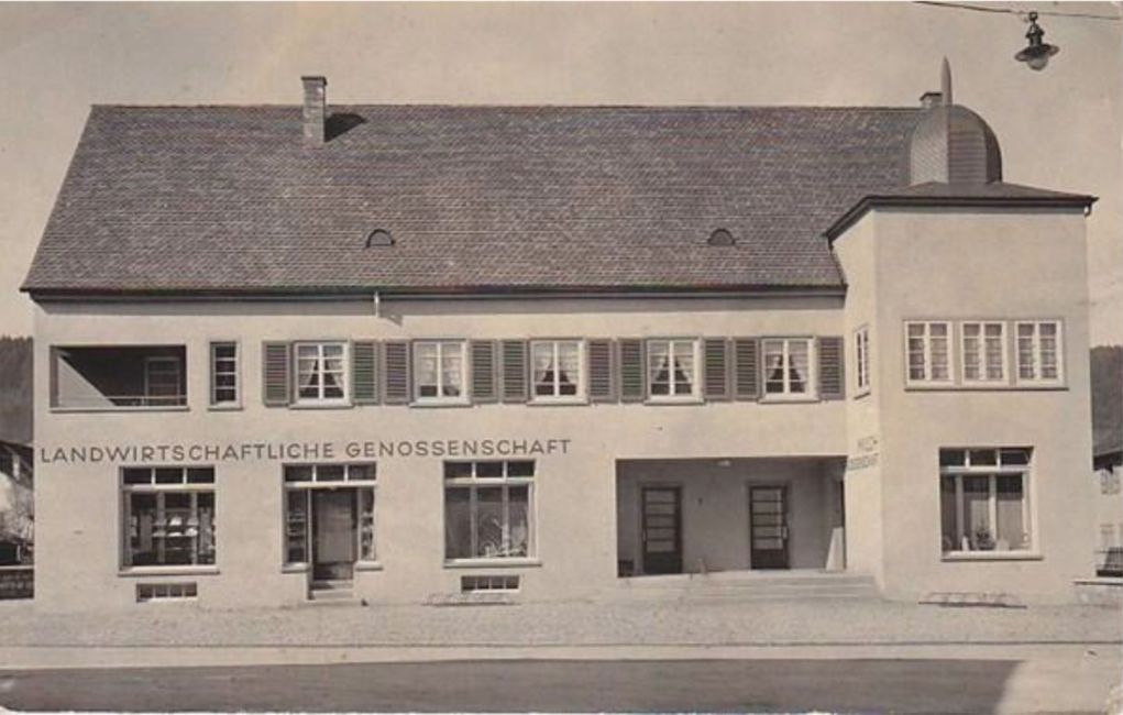 Landwirtschaftliche Konsumgenossenschaft (VOLG) links, Milchgenossenschaft (Milchhütte) rechts an der Dorfstrasse 1. Buch Seite 92.