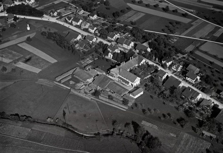 Luftaufnahme der Töpferei Ganz von Walter Mittelholzer am 8.10.1924.