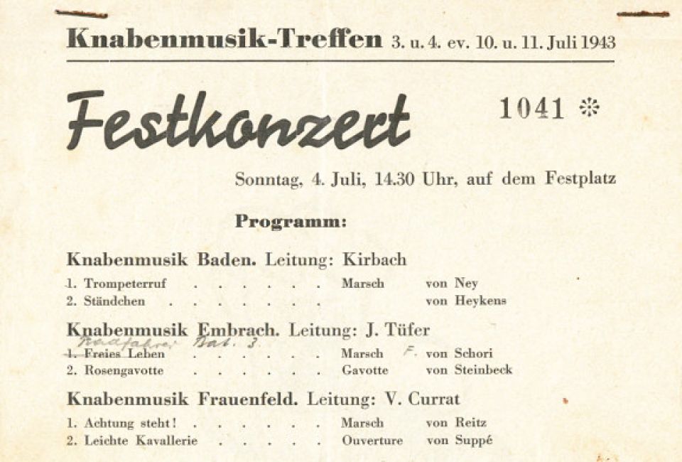 Knabenmusiktreffen in Zürich 1943 mit Festkonzert und Marschmusikkonkurrenz