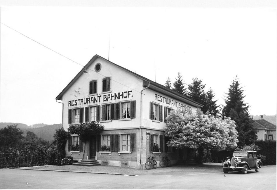 Restaurant Bahnhof in Embrach 1936. Postkarte. Quelle: Sammlung Guggenheim, Schweizerisches Nationalmuseum