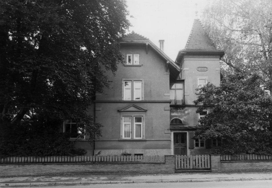 Villa Ganz Dorfstrasse 111, ca. 1970. Vorgärten, Bäume.