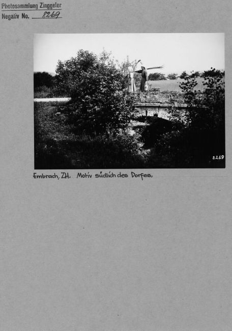 Frauen mit Kopftuch. Brücke über den Wildbach bei Embrach.
