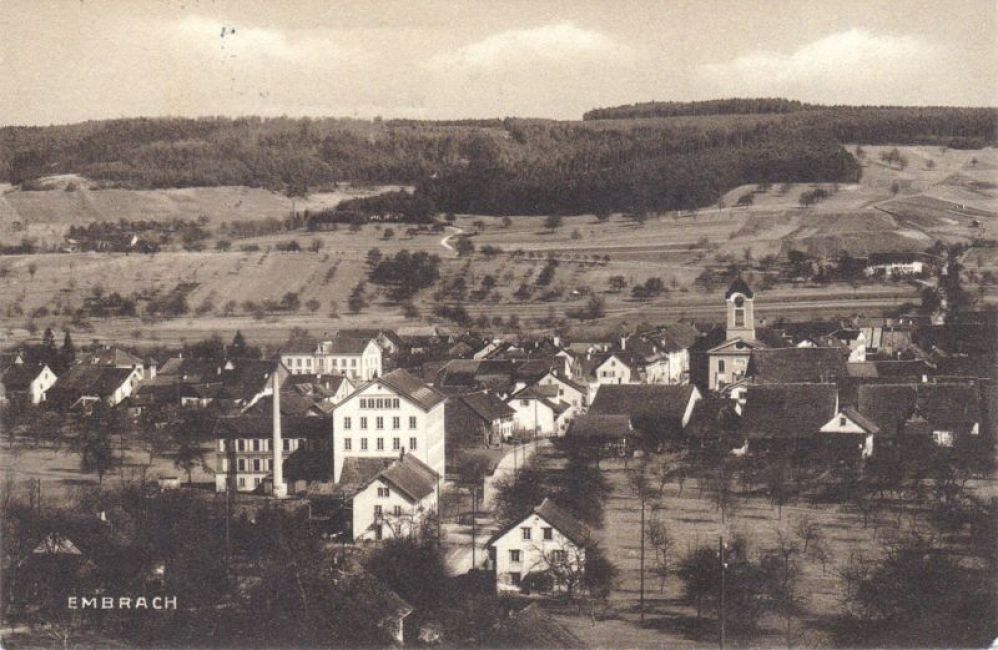 Oberdorf 1914. Seidenzwirnerei und Kirche. Postkarte.