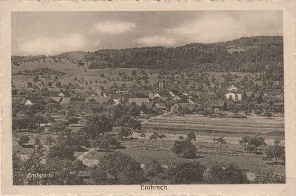 Obedorf Richtung Westen 1924. Rechts das Schulhaus, dahinter die Seidenzwirnerei. Postkarte.