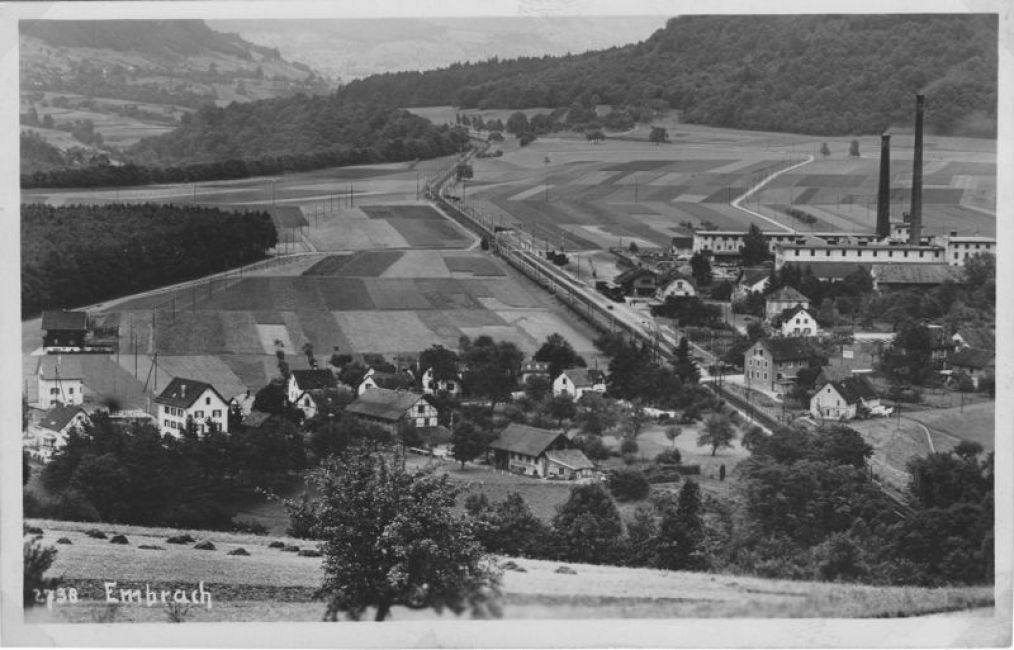 Sationsquartier 1930. Mitte links Töpferei Landert, rechts Steinzeugfabrik. Postkarte.