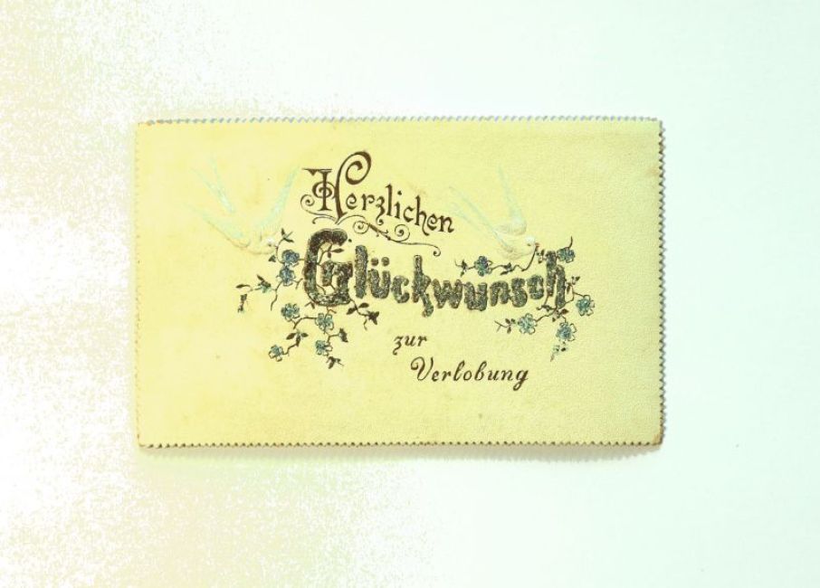 Glückwunschkarte zur Verlobung von Mina Bergmeier und Georg Volkart 1894