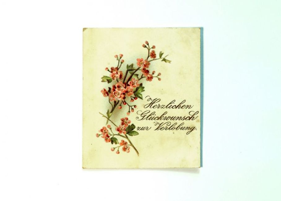 Glückwunschkarte zur Verlobung von Mina Bergmeier und Georg Volkart 1894