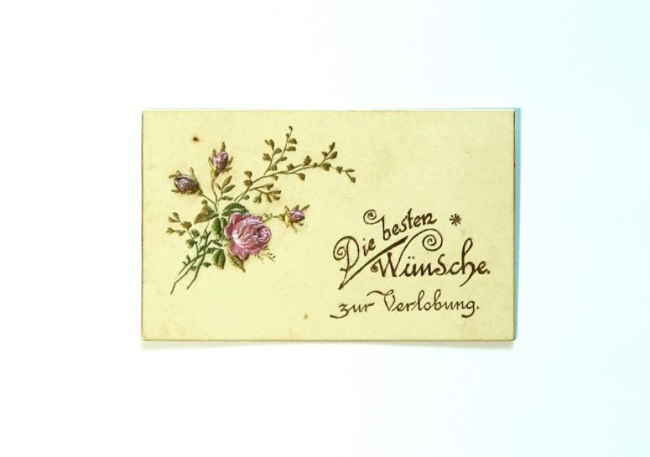 Glückwunschkarte zur Verlobung von Mina Bergmeier und Georg Volkart 1894