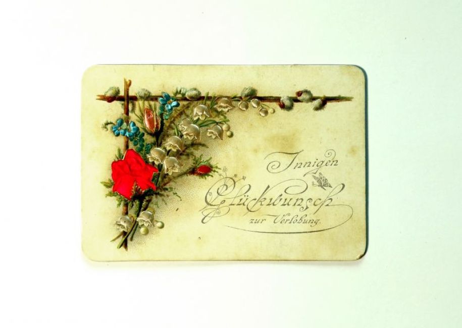 Glückwunschkarte zur Verlobung von Mina Bergmeier und Georg Volkart 1894