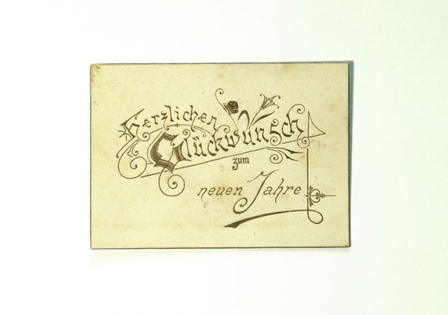 Glückwunschkarte zum neuen Jahr. Auf der Rückseite: Lisette Koradi