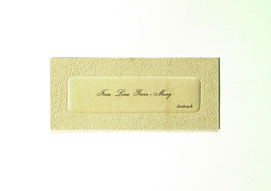 Visitenkarte von Lina Ganz-Maag, Embrach.
