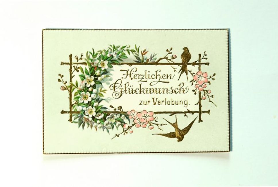 Glückwunschkarte zur Verlobung von Mina Bergmeier und Georg Volkart