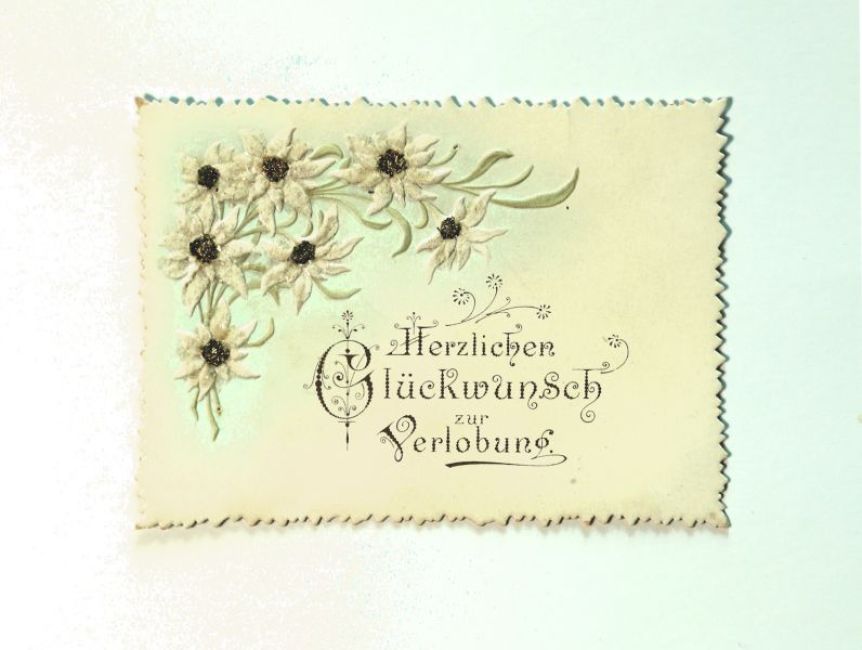 Glückwunschkarte zur Verlobung von Mina Bergmeier und Georg Volkart