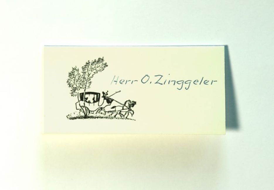 Tischkärtchen wsch. zur Hochzeit von Gertrud Volkart und Otto Zinggeler 1923