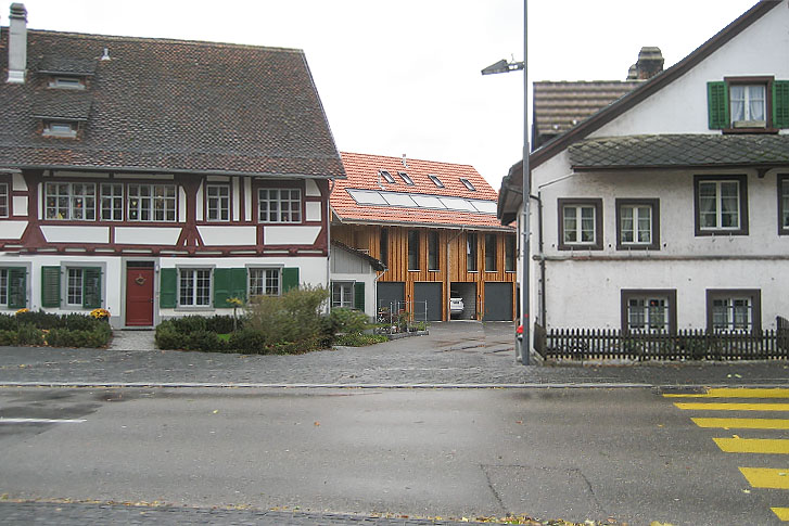 in der Mitte des Bildes hin und her, um zwischen dem historischen Bild und der heutigen Ansicht zu wechseln.