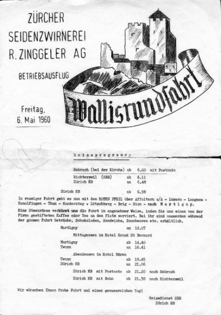 Betriebsausflug der Seidenzwirnerei Zinggeler in Embrach 1960
