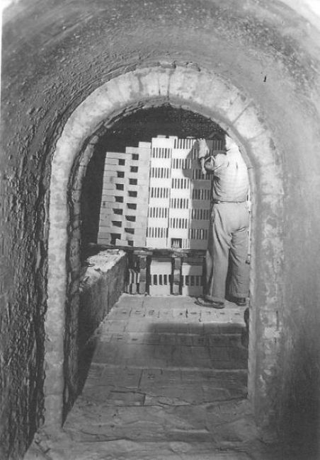 Ofenfüllung mit Plättli in der Ofenfabrik Ganz in Embrach ca. 1940.