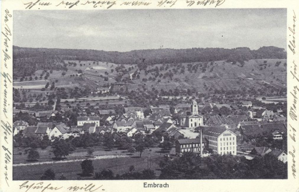 Obderdorf mit Kirche und Seidenzwirnerei. Postkarte.