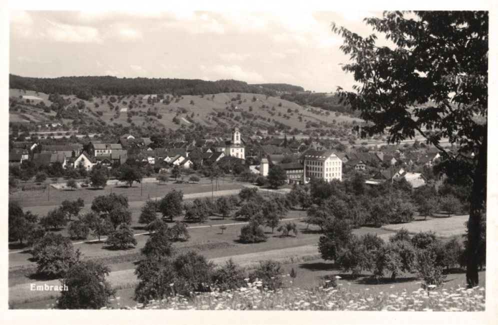 Oberdorf 1950. Kirche und Seidenzwirnerei. Postkarte