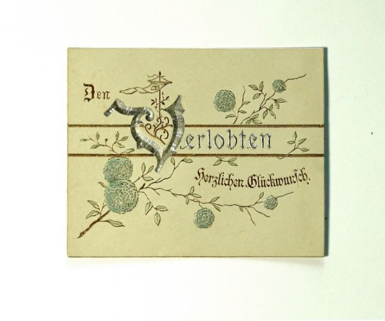 Glückwunschkarte zur Verlobung von Mina Bergmeier und Georg Volkart 1894